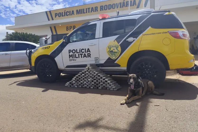 O cão de detecção K9 Máximus foi utilizado na busca veicular e indicou positivamente o bagageiro do carro. Dentro dele, os policiais localizaram uma mala vermelha, que, devido ao peso anormal e à indicação do animal, foi aberta. No interior, estavam vários tabletes de maconha prensada, totalizando 68,2 quilos.