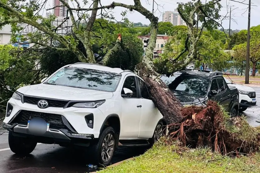 No mesmo cruzamento, dois veículos foram atingidos. Um Toyota SW4 estacionado na Praça Oscar Thompson ficou sob uma árvore, e uma Fiat Toro também foi danificada.