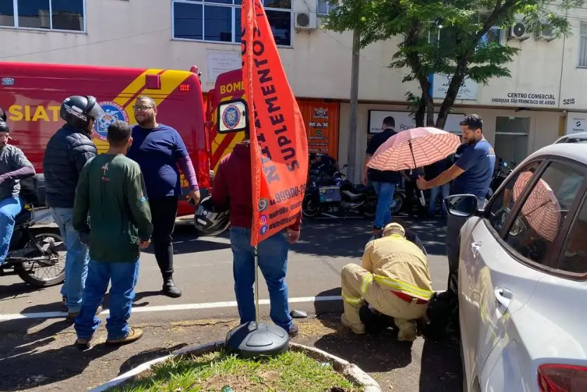 Um motociclista de 33 anos ficou ferido após colidir com um carro na manhã desta quinta-feira (25), na avenida Maringá, em Umuarama, no trecho ao lado da Matriz Paróquia São Francisco de Assis.