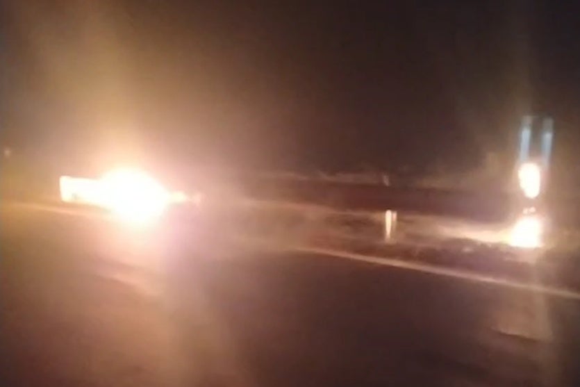 Chamas atingiram vegetação e placas de sinalização na PR-323, próximo ao entroncamento com a PR-486, na noite de quinta-feira (25)