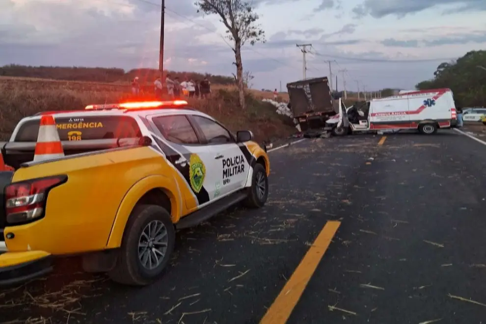 De acordo com a Polícia Rodoviária Estadual (PRE), o caminhão, conduzido por um homem de 54 anos, seguia no sentido Engenheiro Beltrão a Quinta do Sol quando perdeu o controle e bateu de frente com a ambulância que vinha no sentido contrário, conduzida por um motorista de 61 anos.