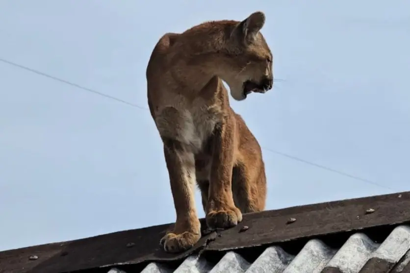 Um morador de Congonhinas, no Norte do Paraná, se assustou com uma onça-parda no telhado de sua residência, que acabou resgatada na tarde de terça-feira (30). O felino, uma fêmea de menos de um ano, foi visto em cima do teto de uma casa e acabou sendo laçado pelo morador do sítio, que a conteve até a chegada das equipes do Instituto Água e Terra (IAT).