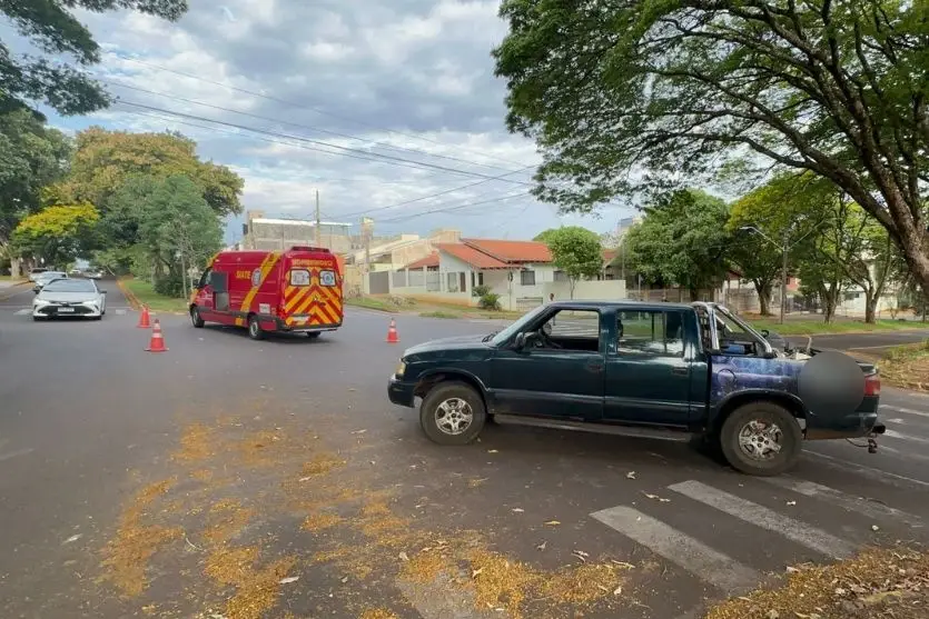 Um acidente entre uma caminhonete S10 e uma motoneta Honda Biz 125 deixou um homem ferido na tarde desta terça-feira (7), em Umuarama, no cruzamento das avenidas Rolândia e Pirapó.