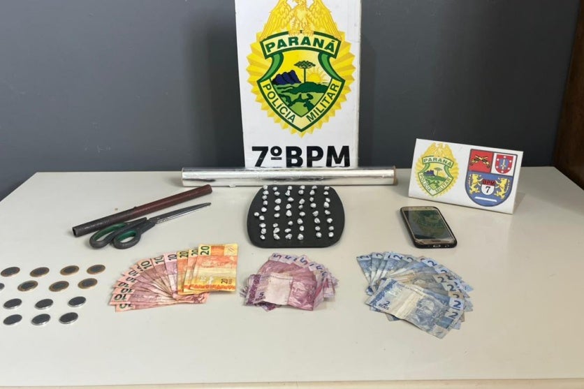 A Polícia Militar (PM) apreendeu 65 pedras de crack na manhã de terça-feira (7) em Rondon. Um homem de 31 anos e uma mulher de 45 foram abordados durante a ação policial, que ocorreu por volta das 9h55.