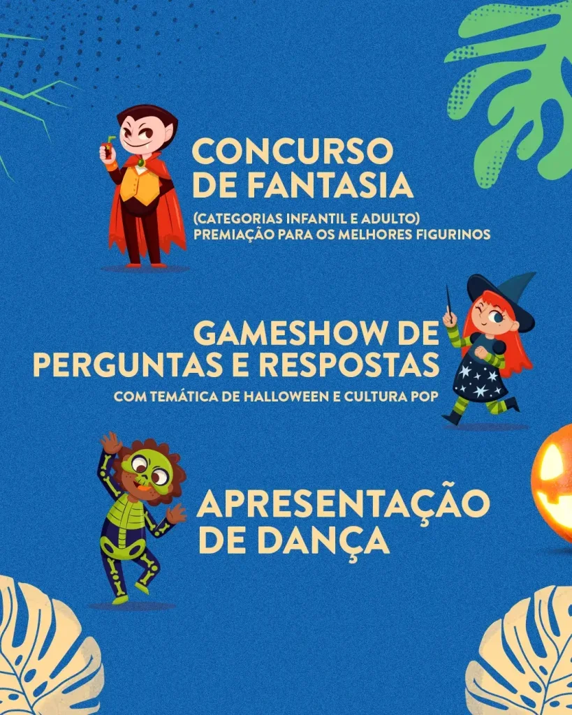 Uma das atrações mais esperadas da tarde será o concurso de fantasias, que contará com categorias infantil, assim como, adulta. Um júri convidado avaliará os participantes e os melhores figurinos ganharão prêmios. A intenção é incentivar a criatividade e a interação entre os participantes, valorizando tanto os clássicos do Halloween quanto releituras tropicais e produções originais.