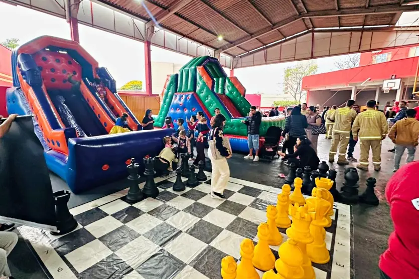 O quartel da 2ª Companhia Independente de Bombeiro Militar se transformou em um espaço de diversão e alegria. Foi necessário instalar brinquedos infláveis e camas elásticas até mesmo a rua nos fundos do prédio para atender a demanda.