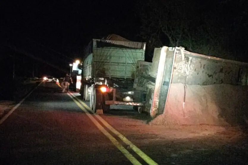 De acordo com a Polícia Rodoviária Estadual (PRE), a carreta — composto por caminhão-trator e dois semi-reboques — transportava esterco de galinha, e parte da carga ficou espalhada às margens da PR-239 após ela tombar.