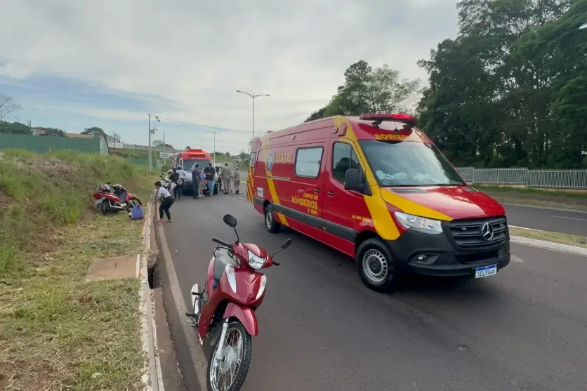 Uma motociclista em uma Honda Biz, de 42 anos, ficou ferida ao escorregar em óleo derramado na avenida Portugal, em Umuarama, na manhã desta quarta-feira (15). Acidente ocorreu quando ela estava a caminho do trabalho.