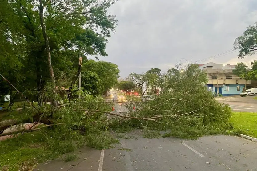 Um vento forte atingiu Umuarama na tarde desta quinta-feira (16), levantando nuvens de poeira, escurecendo o céu e derrubou galhos de árvores em diferentes pontos da cidade. O caso mais grave foi registrado por volta das 17h30, na Avenida Presidente Castelo Branco, no trecho sentido Centro–bairro, onde uma árvore caiu em frente à entrada principal do Bosque dos Xetá, bloqueando completamente a pista.