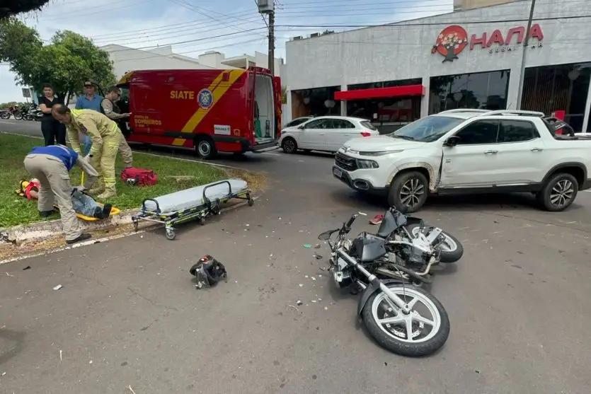 Um motociclista de 37 anos ficou ferido no fim da manhã desta sexta-feira (17) após se envolver em um acidente com uma caminhonete na avenida Londrina, em Umuarama, no Noroeste do Paraná.