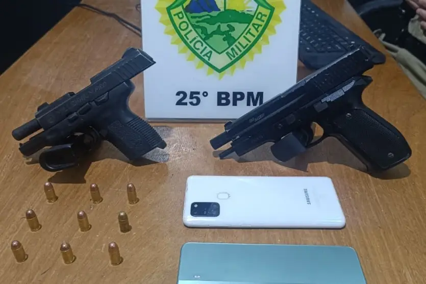 A Polícia Militar (PM) recuperou uma arma furtada em Maria Helena e prendeu dois homens envolvidos no crime na madrugada desta segunda-feira (20), no Centro da cidade. A ocorrência teve início por volta da meia-noite, quando um homem procurou a equipe policial relatando o furto de sua pistola particular, que estava guardada em seu carro enquanto ele visitava familiares.