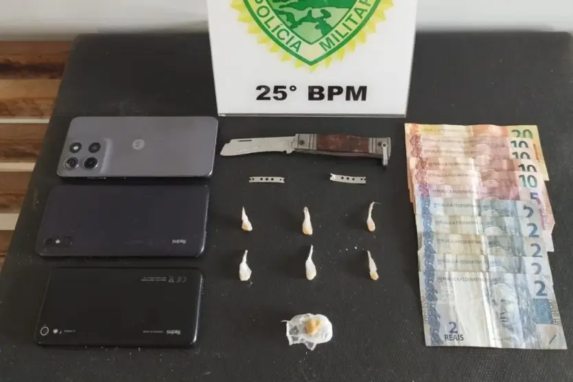 A operação contou com o apoio do Canil da Polícia Militar, que realizou varredura em uma área de mata próxima. Na residência associada aos suspeitos, os policiais apreenderam objetos usados para fracionar drogas, três celulares e R$ 75,00 em dinheiro.