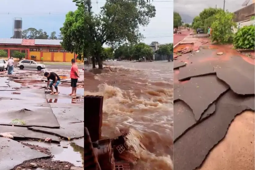 Em alguns trechos, o asfalto foi totalmente arrancado, e carros ficaram cobertos e quase foram levados pela enxurrada. Moradores relataram espanto com a força da água e registraram cenas que mostram a intensidade do temporal.
