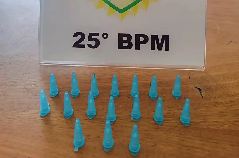 A equipe policial foi até o endereço para fazer uma averiguação. Na casa, os PMs encontraram uma sacola contendo 17 eppendorfs (tubetes/pinos) de cor azul. Dentro deles havia cocaína. A sacola estava próxima ao muro da residência. Os militares verificaram o imóvel e constataram que não havia ninguém em seu interior.