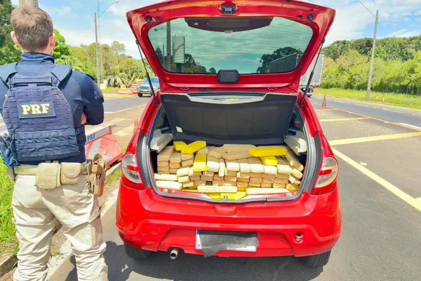 Por volta das 8h30, os agentes abordaram um Renault Sandero. Durante a fiscalização, foram encontrados tabletes de maconha no porta-malas, somando 200 quilos. O motorista informou que havia recebido o veículo já carregado em Umuarama e que o levaria até Itajaí (SC). O veículo, a droga e o condutor foram encaminhados à Polícia Civil de Guarapuava.