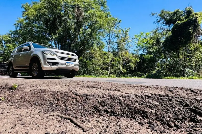 Buraco que teria provocado colisão fatal na PR-323 foi fechado ainda na tarde de segunda-feira (10), mas trecho segue com danos visíveis no asfalto (Foto Danilo Martins/OBemdito)
