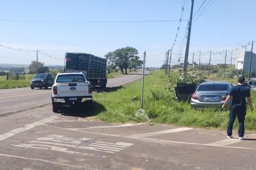 De acordo com informações da Polícia Militar, uma motocicleta teria cruzado repentinamente a pista, levando o motorista da caminhonete a desviar para evitar a batida. Com a manobra, o veículo acabou atingindo o automóvel, que aguardava para acessar a via principal.