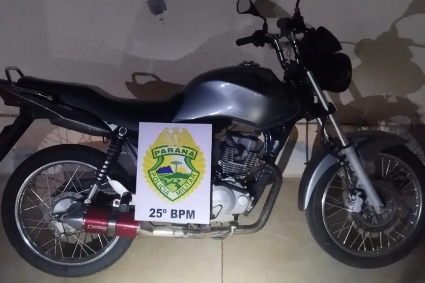 Uma motocicleta irregular em Francisco Alves acabou apreendida pela Polícia Militar (PM) na noite de terça-feira (11), durante patrulhamento no perímetro urbano do município. A abordagem ocorreu por volta das 21h30, quando a equipe policial avistou dois homens trafegando sem capacete.
