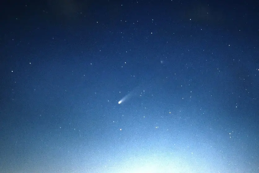 “O cometa Lemmon estava muito difícil de ver a olho nu. Fotografei com uma Canon 6d lente 85mm e, em seguida, fiz a técnica de empilhamento de 38 fotos pra manter a qualidade da imagem”, explicou o fotógrafo de Umuarama.