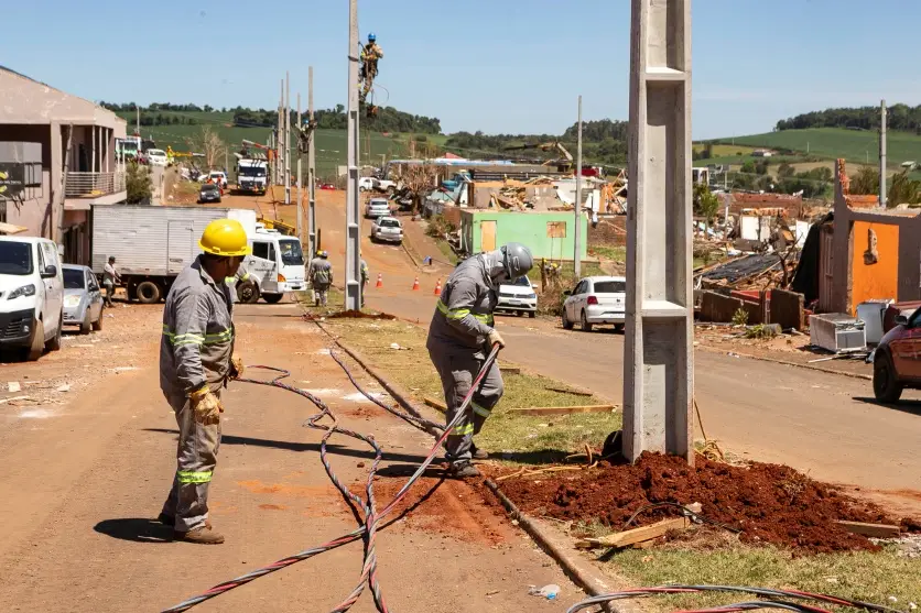 De um total de 1.860 residências vistoriadas, 240 terão o novo padrão de ligação à rede instalado gratuitamente pela companhia. Outros 273 imóveis, totalmente destruídos pela força do tornado, terão a instalação programada. Em 306 residências, em que os padrões permitem conexão, as equipes trabalham no religamento dos ramais à rede elétrica.