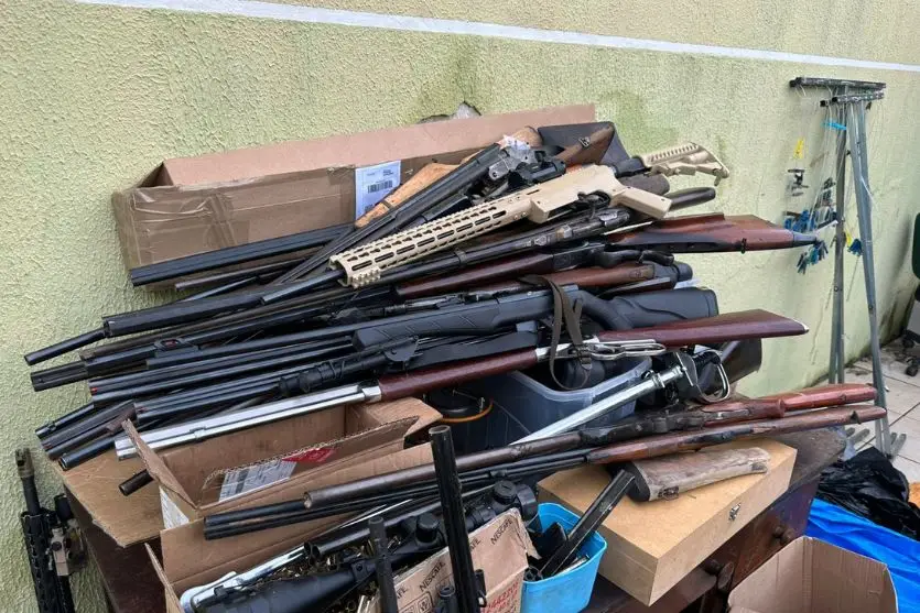 Parte do material apreendido estava registrada em nome do suspeito como CAC (Foto Polícia Civil)