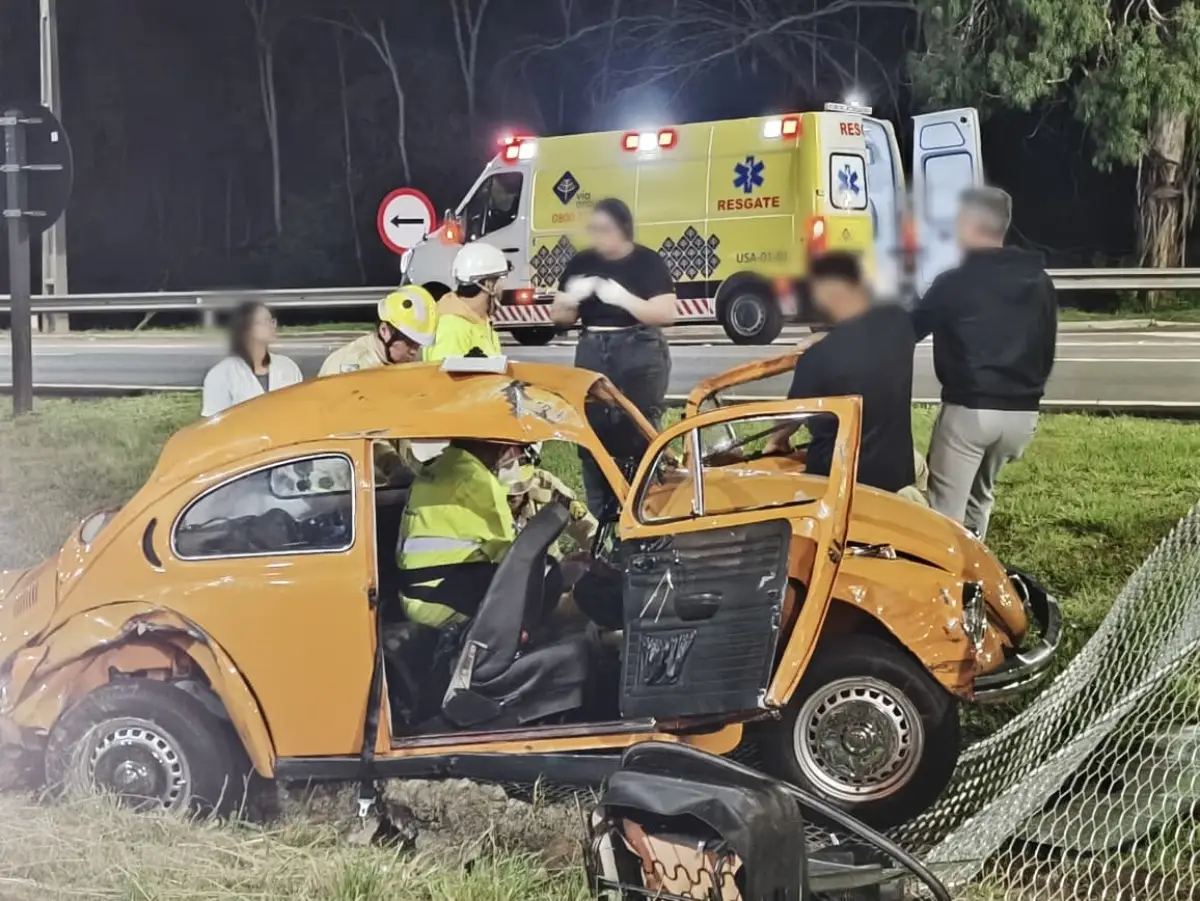 Dois homens ficaram feridos após o carro em que estavam, um Fusca de relíquia, capotar e atingir o canteiro central da BR-277, no bairro Orleans, em Curitiba. O acidente aconteceu início da madrugada deste sábado (15). Os dois amigos voltaram de um encontro de carros antigos.