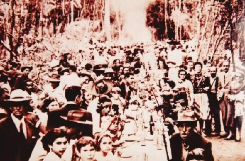 Só mesmo esta imagem rara para comprovar o cenário exótico daquele primeiro dia de nossa História: uma churrascada no meio da floresta reunindo centenas de valorosos trabalhadores comemorando o nascimento de uma nova cidade no Paraná - Fotos: Esclusivas do acervo histórico de Italo Fábio Casciola