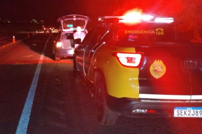 Ao ser abordado no Bairro Catarinense, em Francisco Alves, o motorista de 42 anos tentou se livrar rapidamente de uma garrafa de Corote sabor blueberry que, sem tampa, derramou parte do conteúdo no interior do veículo. A embalagem de 500ml, ainda com resquícios da bebida, foi apreendida, e a tampa foi localizada no banco do passageiro.