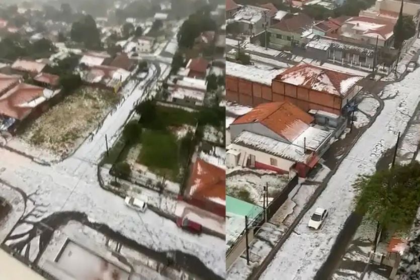 Granizo transforma Ponta Grossa e deixa bairros com aparência de nevada; imagens