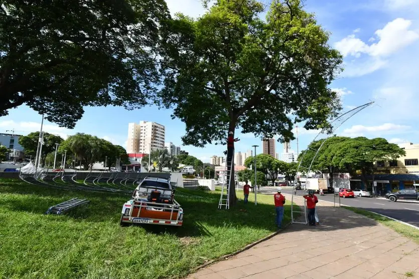 A empresa contratada pelo município para instalar a iluminação decorativa natalina em praças e espaços públicos iniciou os trabalhos na praça Santos Dumont nesta sexta-feira (28), após a chegada da primeira remessa de materiais. A previsão da Prefeitura é de que, em no máximo dez dias, todos os elementos estejam montados, transformando visualmente as principais áreas da cidade, incluindo as praças centrais, a sede do Executivo, o Lago Aratimbó e rotatórias de grande circulação.