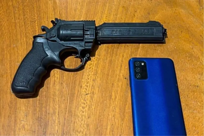 Simulacro de arma de fogo usado por criminoso em Umuarama (FOTO: 25 bpm)