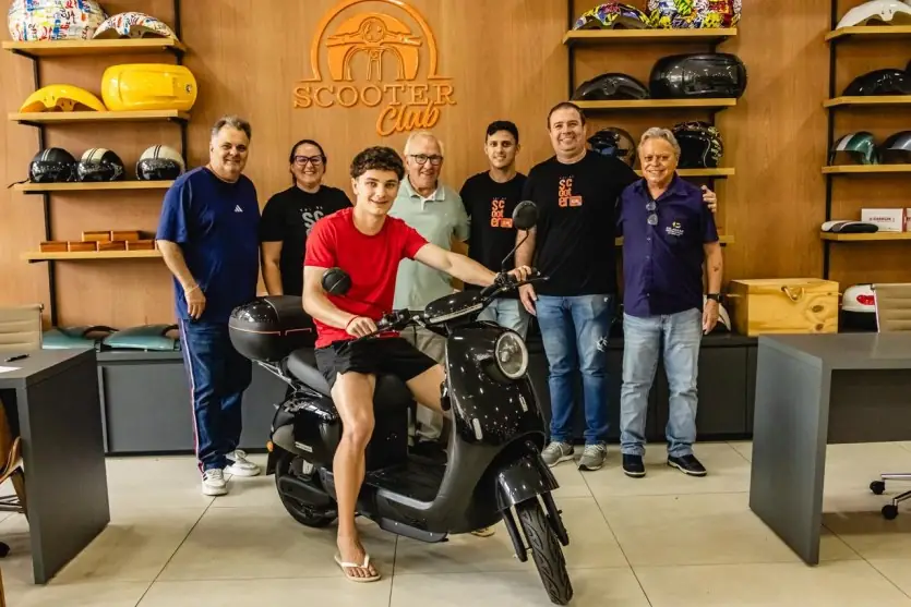 A Scooter WAO, sorteada no intervalo do jogo entre Afsu x CAD Guarapuava, válido pelo Campeonato Paranaense de Base SUB-20, já tem dono: Natan Novak, de 16 anos. A entrega oficial aconteceu nesta sexta-feira (28), na loja da Scooter Clube, em Umuarama, e marcou um momento especial para todos os envolvidos.