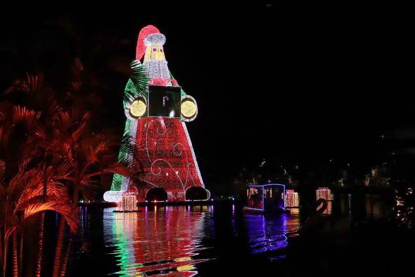 Estrutura natalina de 27 metros e 15 toneladas instalada no Lago Igapó 2 rendeu a Londrina o título de maior Papai Noel do mundo (Foto Emerson Dias/Prefeitura Londrina)