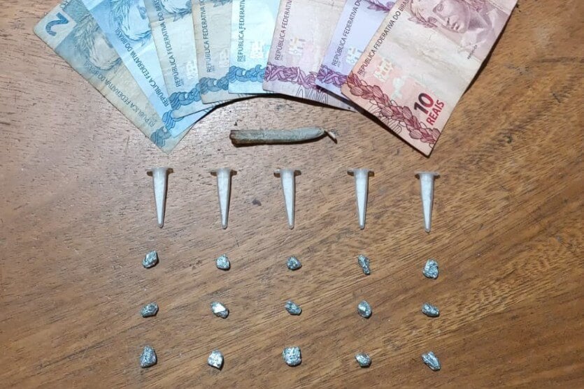 Na região indicada, a equipe abordou um jovem de 18 anos e uma adolescente de 15 anos, que correspondiam às características descritas nas denúncias. Ao perceber a aproximação da viatura, um deles tentou descartar um cigarro de maconha. As buscas seguiram em outros pontos citados pelos moradores, onde foram localizadas mais porções de crack prontas para venda e R$ 30 em espécie.