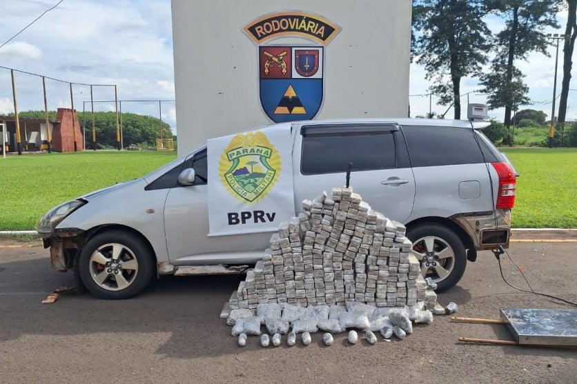 Durante a fiscalização, os policiais identificaram irregularidades que motivaram uma busca minuciosa no carro. Na vistoria, a equipe localizou compartimentos ocultos no interior do veículo, onde estavam escondidas grandes quantidades de entorpecentes. Ao todo, o BPRv apreendeu 219 quilos de substância análoga à maconha, 4,9 quilos de skank e 2,55 quilos de haxixe.