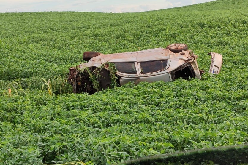 O veículo, um Chevrolet Astra, foi encontrado capotado em meio a uma plantação de soja, às margens da rodovia estadual. Há indícios de que o acidente tenha ocorrido durante a madrugada, mas a situação foi registrada oficialmente ao longo da manhã.