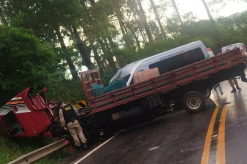 Uma colisão frontal envolvendo um caminhão e uma ambulância deixou uma pessoa morta e outras sete feridas na manhã desta terça-feira (23), na PR-082, em Cidade Gaúcha, após um dos veículos aquaplanar em trecho da rodovia.
