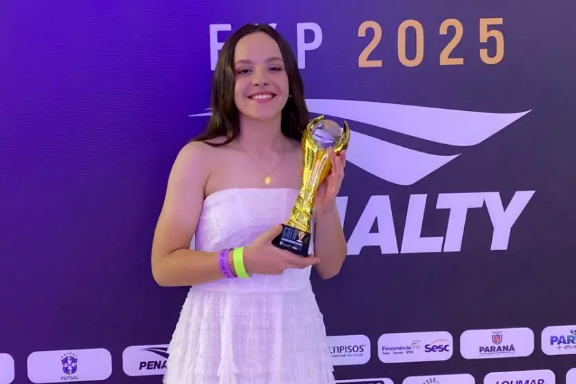 A atleta Maria Eduarda Godói, de 12 anos, natural de Umuarama, foi uma das premiadas no Gala Futsal Paraná 2025. O evento ocorreu em Foz do Iguaçu. A cerimônia foi organizada pela Federação Paranaense de Futsal. A premiação reuniu os principais destaques da temporada no Estado.