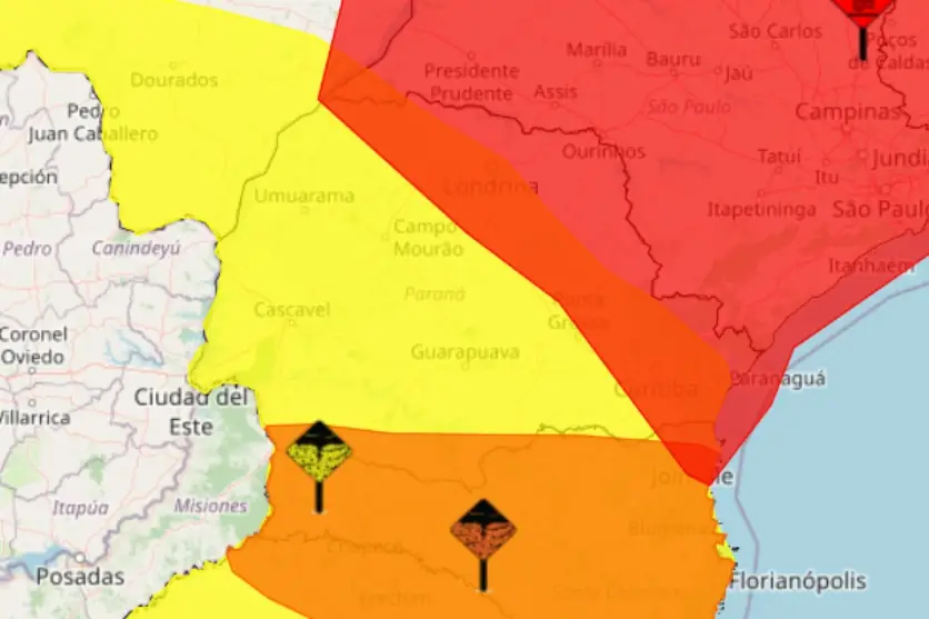 A sexta-feira segue com padrão de temperaturas elevadas nas diversas regiões do estado. Nas regiões noroeste, norte e na faixa litorânea, os termômetros chegam novamente aos 35-36 ºC. Ao longo do dia, pancadas de chuva isoladas deverão ocorrer nas diversas regiões, porém, nas regiões oeste, sudoeste e entre a RMC e as praias, as condições são favoráveis para registros de temporais localizados, com volumes de chuva expressivos.
