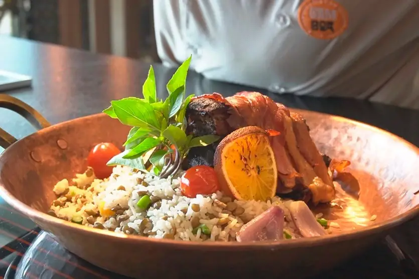 Para acompanhar, Ederson aposta em um arroz com lentilhas e damascos. “É um acompanhamento que conversa muito bem com o prato principal, traz sabor, textura e também simbolismo, já que a lentilha é tradicionalmente associada à prosperidade”, comenta. O toque adocicado do damasco equilibra o conjunto e deixa o prato mais festivo.