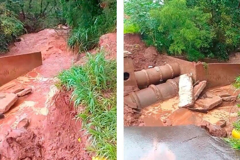 No local, a força da água causou danos significativos em um trecho de tubulação, deixando a rua praticamente interditada. Até a publicação desta matéria, metade da pista já havia cedido, impossibilitando o tráfego normal de veículos e aumentando o risco para quem tenta passar pelo trecho.