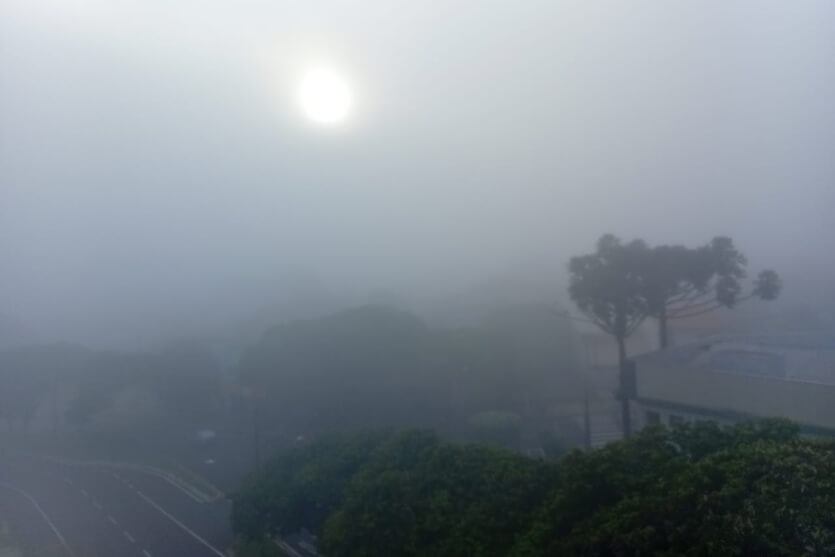 A neblina foi registrada nas primeiras horas da manhã e encobriu parte da área urbana, dificultando a visão em vias e bairros do município. De acordo com o Simepar, às 7h45 a temperatura em Umuarama era de 22 °C, com sensação térmica equivalente e sem previsão de chuva até aquele horário.