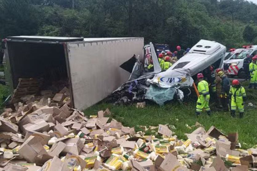 Após a abordagem, o motorista do primeiro caminhão foi liberado, e os criminosos seguiram com o segundo veículo, com a intenção de subtrair a carga. Durante a ação, os suspeitos apagaram as luzes e liberaram a trava do caminhão, que se deslocou de ré e colidiu violentamente com uma van que transportava 21 pessoas.