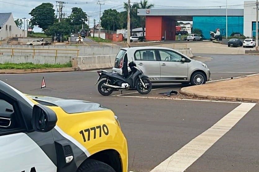 Motociclista fica ferido após colisão no trevo do Gauchão, em Umuarama