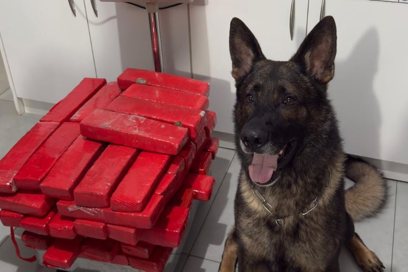 Em bolsas localizadas no compartimento de carga e na cabine do veículo, os policiais encontraram diversos tabletes de substância análoga à maconha. Em nova varredura, o cão também sinalizou o painel do automóvel, onde foram localizados mais três tabletes escondidos sob o porta-luvas.