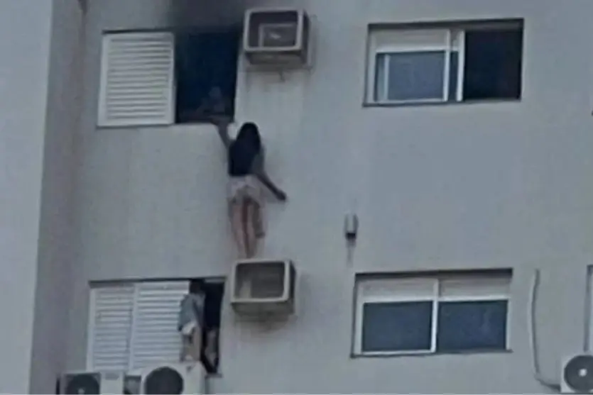 Imagens registradas por testemunhas mostraram a advogada pendurada no suporte de um aparelho de ar-condicionado enquanto realizava o resgate.