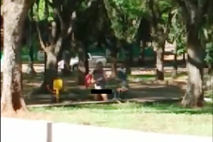 Um homem sem as calças foi flagrado em plena manhã desta quarta-feira (1º) na praça Anchieta, em Umuarama. No vídeo, enviado para OBemdito, é possível ver o homem com uma coberta e mexendo com outras pessoas.
