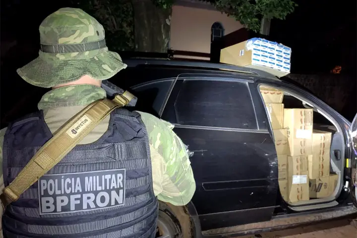 Na noite de quarta-feira (1) policiais militares do Batalhão de Polícia de Fronteira (BPFron), apreenderam em Iporã, um veículo carregado com aproximadamente 2.500 pacotes de cigarros contrabandeados. O motorista fugiu.