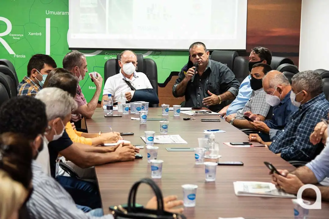 Participaram do encontro em Umuarama o presidente da Amerios Marcos Alex, o Superintendente Executivo Álvaro Cabrini, o chefe do Escritório Regional de Maringá Fábio Vilhena, além de prefeitos e prefeitas das cidades da região.