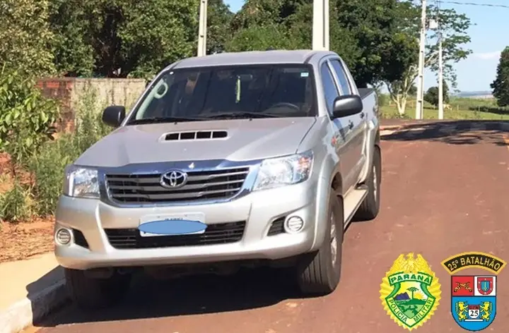 De acordo com a PM, era por volta das 15h30 quando uma pessoa ligou para o 190 e disse que havia uma caminhonete abandonada em uma das ruas do distrito. Os policiais realizaram buscas e encontraram a Hilux. Foi feita a verificação, que constatou se tratar do veículo roubado em Maringá.